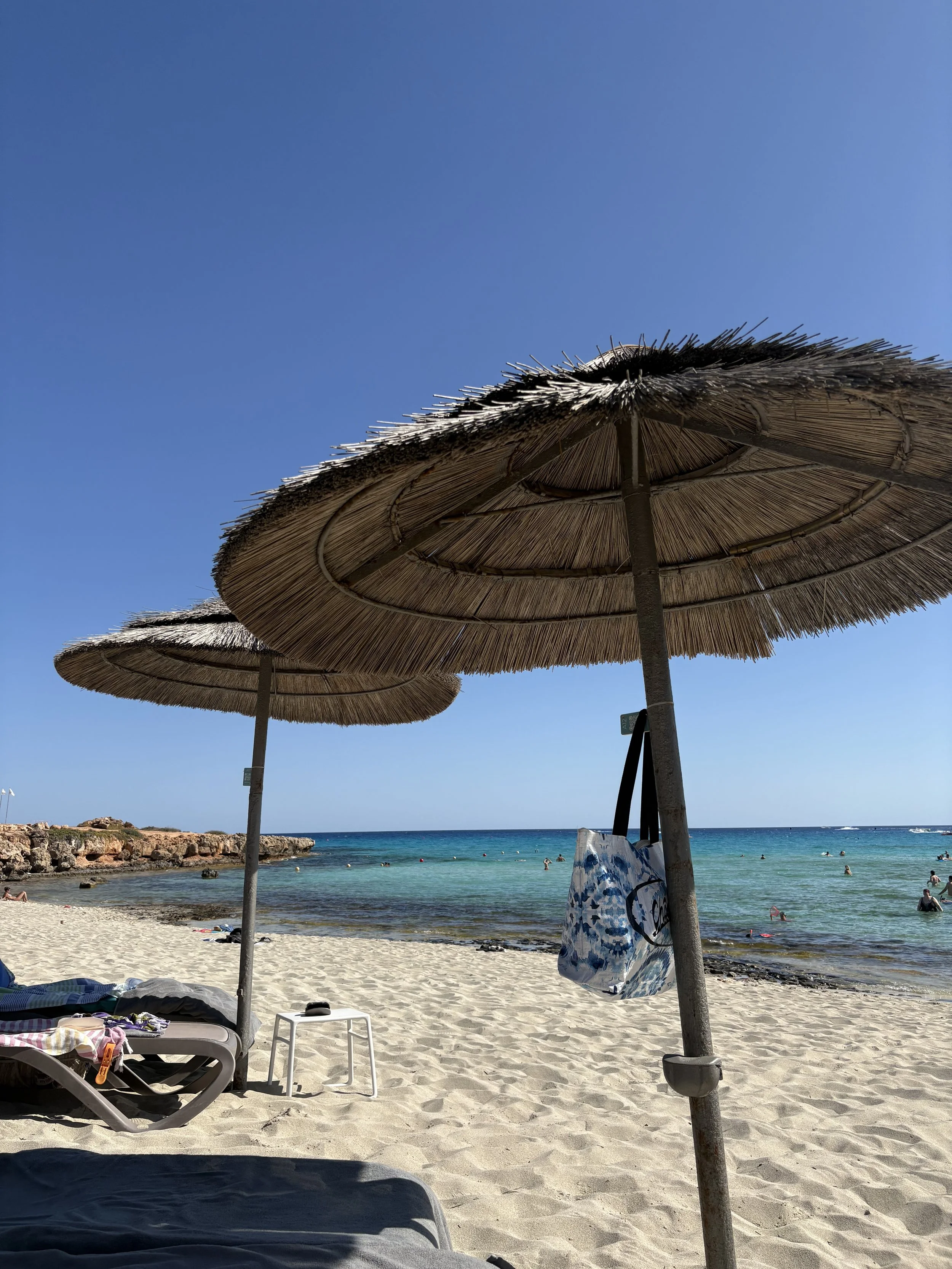 Ensimmäinen rantapäivämme kului Cape Grecon alueella olevalla upealla Konnos Beachillä. Ranta on pieni, kallioiden väliin jäävä kirkasvetinen ranta, jossa on mukava ja kohtuuhintainen rantaravintola. Kaikki rantatuolit olivat puolen päivän jälkeen täynnä, joten jos varmasti haluaa varjon ja tuolit, kannattaa mennä ajoissa, etenkin sesonkiaikana, joka ei edes vielä heinäkuun alussa ole varsinaisesti päällä.