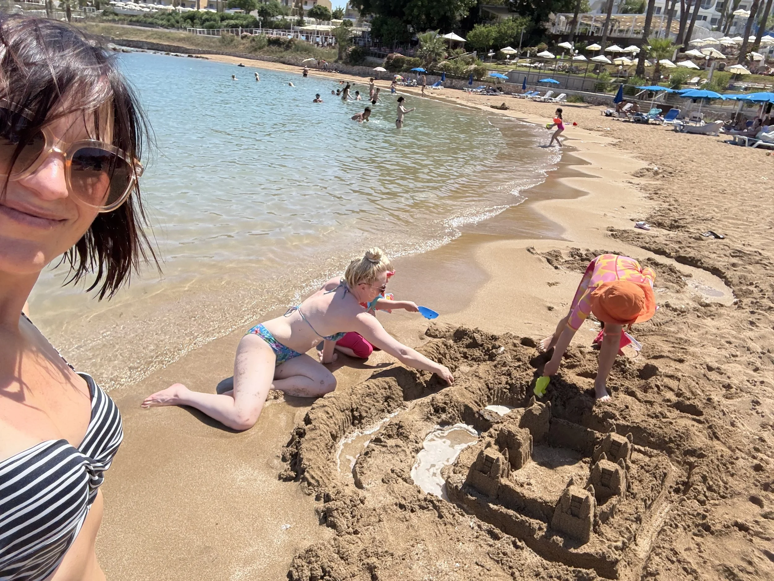 Ranta oli kuitenkin muuten hyvin varusteltu. Tuoleja vuokraavia pisteitä oli useita, ja jopa vapaita tuoleja löytyi. Rannan ravintolavalikoima oli aika laaja, ja kauppojakin löytyi. Viihdyimme pitkään hiekkalinnahommissa, ja lähdimme lopulta kotipihaan grillaamaan. Kalamiehelle emme kyllä palaisi, mutta jos ranta-aktiviteetit, banaaniveneet, polkuveneet ja muut sellaiset kiinnostavat, Kalamies on oikein hyvä.