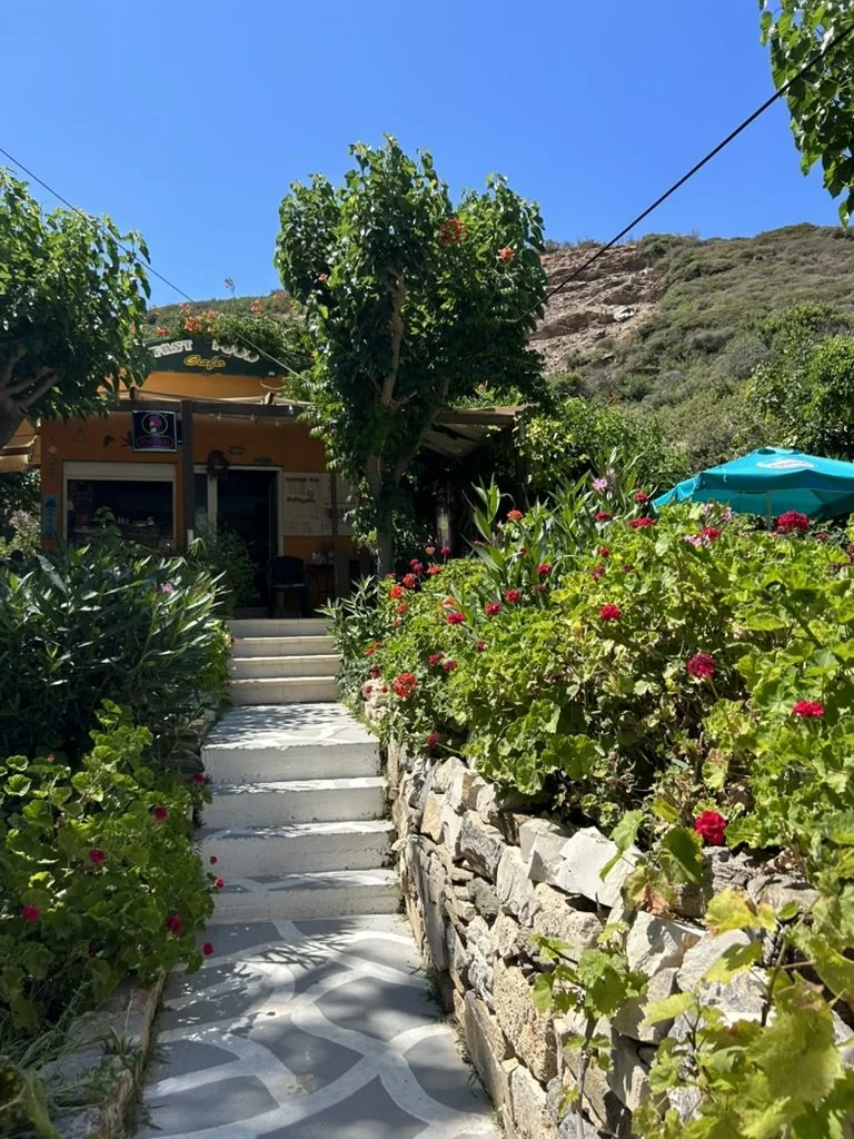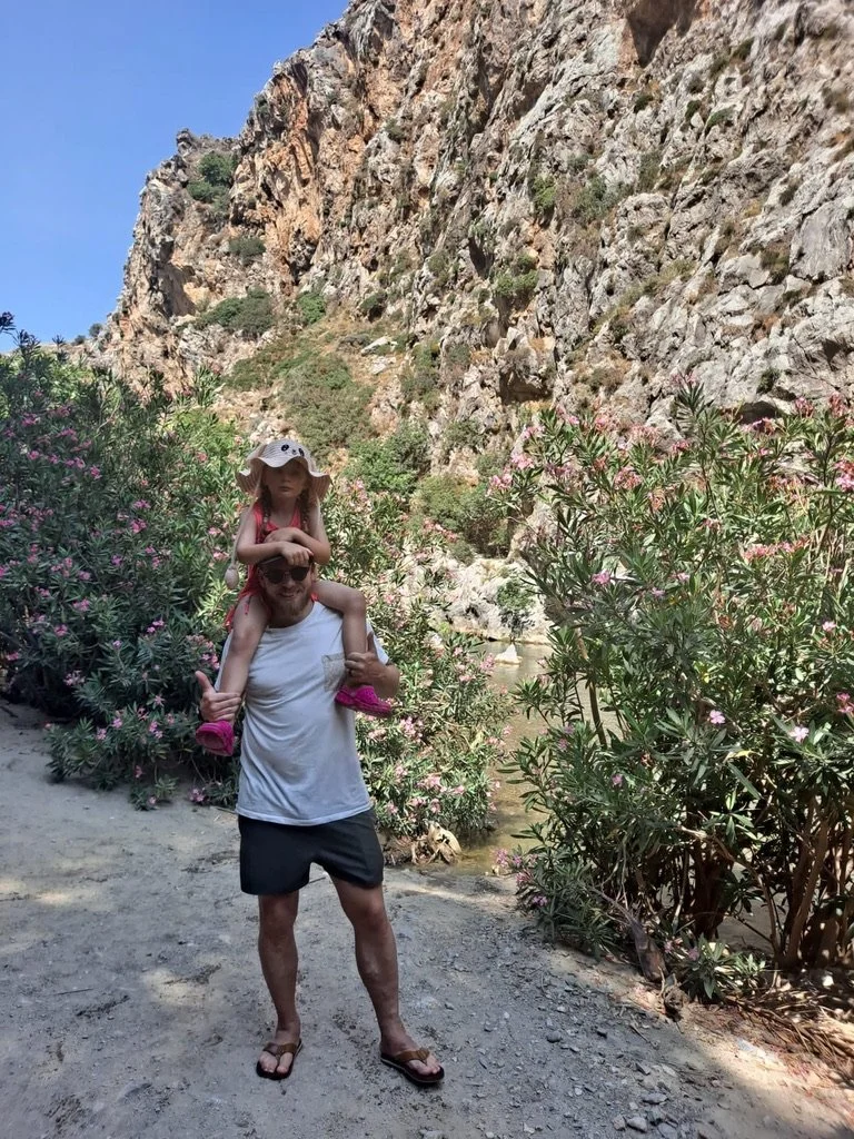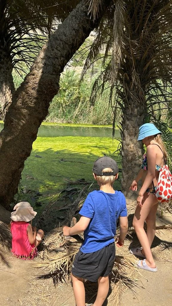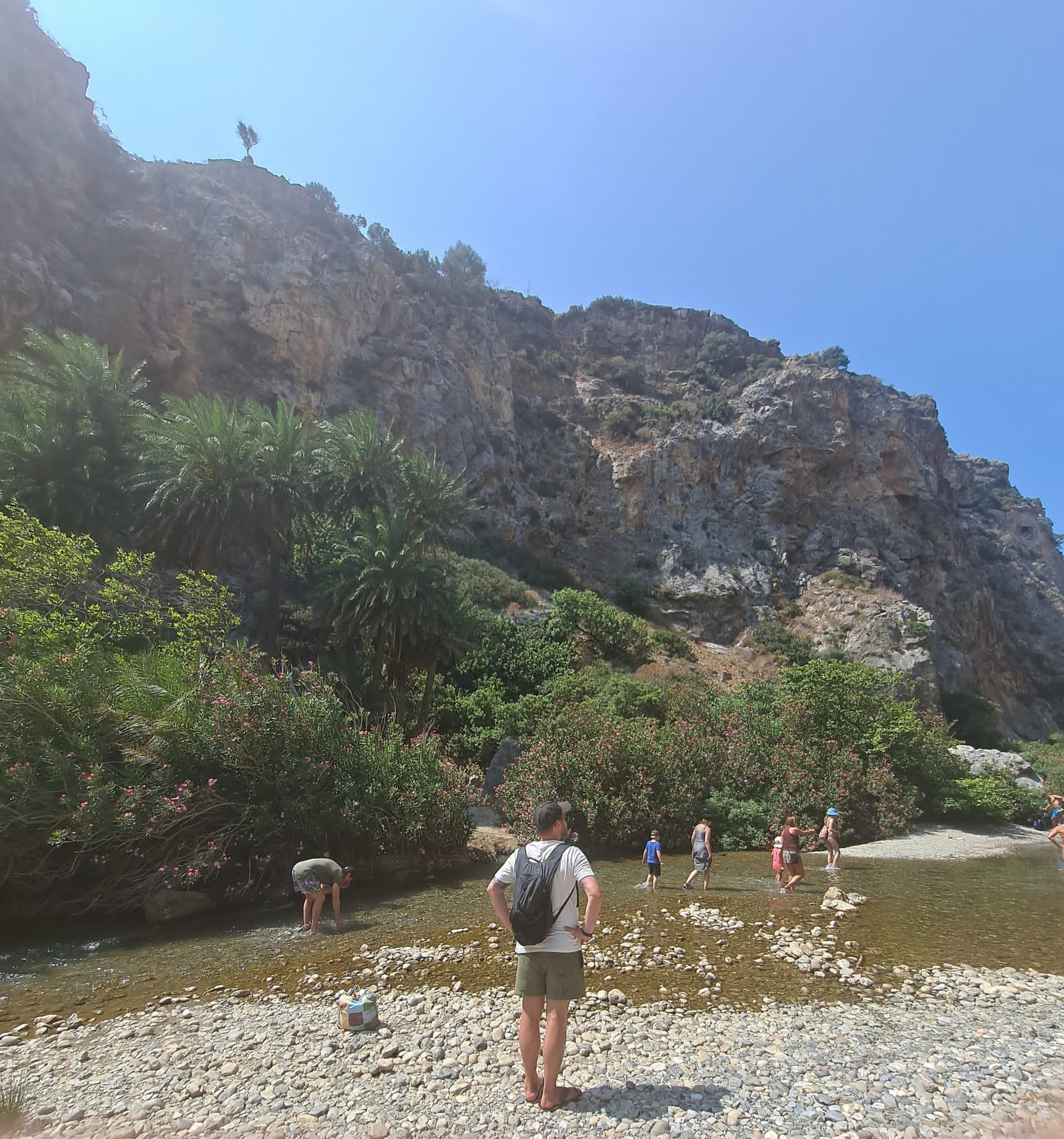 Prevelin palmumetsä tarjosi hauskan vastapainon rantaelämälle. Paikalle on syntynyt luonnostaan palmumetsä, jonka palmut ovat harvinaisia kreetalaisia palmuja, eikä niitä juurikaan tavata muualla euroopassa. Kreetalaisessa tarustossa metsän on tietenkin jumalien aikaansaannosta, mutta luonnontiede kertoo, että palmut ovat kotoperäisiä kreetalaisia puita, jotka ovat olleet saarella jo tuhansia vuosia sitten. Niiden uusiutumiskyky on ällystyttävä, sillä vuonna 2011 metsä paloi lähes maan tasalle. Nyt reilu kymmenen vuotta myöhemmin se on kaunis päiväkävelypaikka, jonka keskellä on upeita turkooseja joenuomia - täydellisiä paikkoja pienelle pulahdukselle kesän kuumuudessa. Myös toisen maailmansodan aikaan paikka on ollut merkittävä piilo- ja suojapaikka niin paikallisille asukkaille kuin läheisen luostarin munkeillekin. Me nautimme Prevelin rannasta, metsästä ja vaatimattomasta rantaravintolasta erittäin paljon.