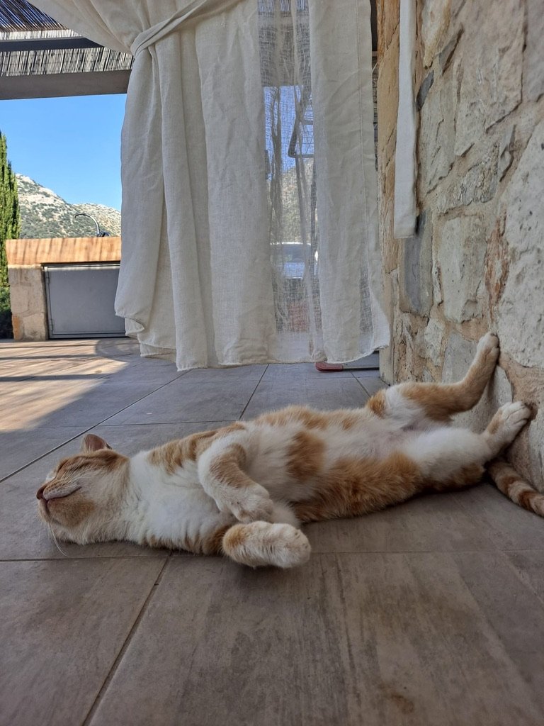 Lisäksi paikkaa manageerasi eeppinen mister Stelios, joka oli paikalla 10 minuutissa ihan minkä tahansa asian suhteen: jos tarvittiin lisää viinilaseja, haluttiin eroon muurahaisista keittiössä tai haluttiin vaientaa naapurivillan yölliset allasbileet. Ei, emme ole boomereita, mutta meillä on lapsia, jotka halusivat nukkua… Stelios hoiti kaiken minuuteissa.